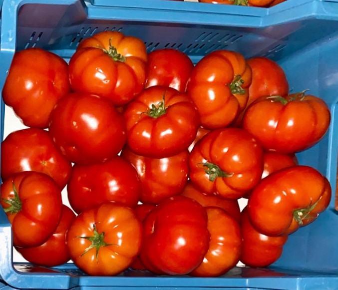 We offer the Spanish Rosa tomato variety, characterized by its large size, intense red color, and sweet flavor.