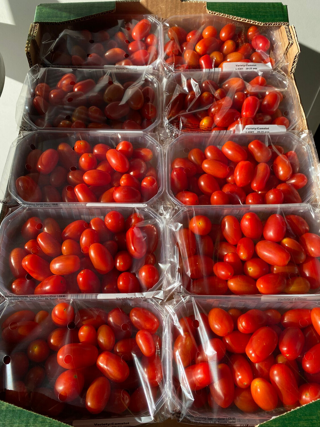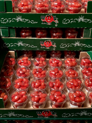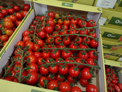 We commercialize Cherry tomatoes from Spain. They are very small-sized tomatoes characterized by a sweet and juicy flavor.